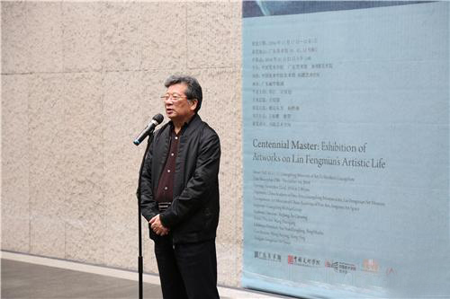 中國美術(shù)學(xué)院老院長、林風(fēng)眠弟子、林風(fēng)眠藝術(shù)院籌委會(huì)主任肖峰在展覽開幕現(xiàn)場講話